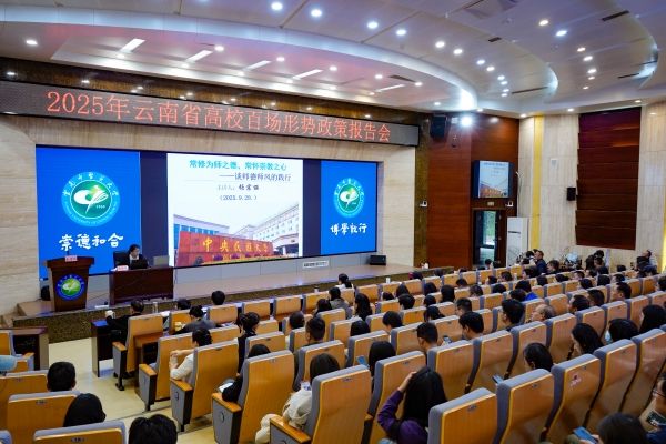 云中讯(党委教师工作部 党委宣传部)9月28日上午,学校在呈贡校区举办师德师风建设专题讲座暨2025年云南省高校百场形势政策报告会。中央民族大学杨宗丽教授应邀作《常修为师之德,常怀崇教之心——谈师德师风的践行》专题辅导,学校高层次人才、新入职教师、各部门教师代表共260余人参加。
