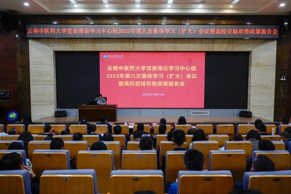 云中讯(新闻与融媒体中心)10月17日下午,学校在呈贡校区翰墨楼一楼报告厅举行党委理论学习中心组2025年第八次集体学习(扩大)会议暨云南省高校百场形势政策报告会。会议特邀省委宣讲团成员、昆明理工大学马克思主义学院王海云教授作专题报告。在家校领导、全体处级干部、职能部门科级干部、马克思主义学院教师、全体辅导员参加学习。校党委书记邱勇主持会议。