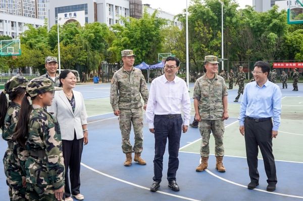 云中讯(武装部)9月16日上午,党委书记、军训工作领导小组组长邱勇,党委副书记、副组长杨鹤清,副校长、副组长邰先桃一行前往2025级本科新生军训现场,看望正在训练的学生,给全体参训学生送去关心与鼓励。