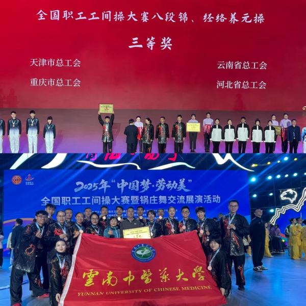 此前,在云南省总工会八段锦比赛中,我校教职工参赛队代表省教卫科工会参赛,以线上预赛第一名、现场决赛一等奖的成绩赴青海参加全国决赛。
