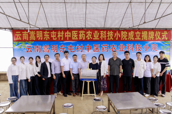 云中讯(研究生处)7月21日上午,由云南中医药大学牵头,昆明市农业科学研究院、云南民族大学共同建设,嵩明县县委县政府重点支持的“云南嵩明东屯村中医药农业科技小院”正式揭牌成立。