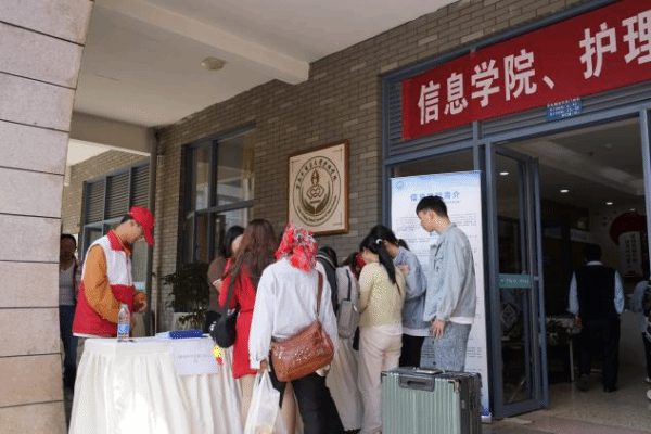 为避免新生在校园内往返奔波,学校统筹各学院结合宿舍分布,在一期紫竹苑、银杏苑、金桂苑及二期景天苑、熟地苑宿舍楼下,分别设置了对应学院的迎新点。每个迎新点都悬挂着醒目的学院标识,配备了专业的辅导员与学生志愿者,桌上整齐摆放着报到登记表、新生手册等物资,让新生一到宿舍区,就能快速找到所属学院的服务站点,“一站式”完成报到。