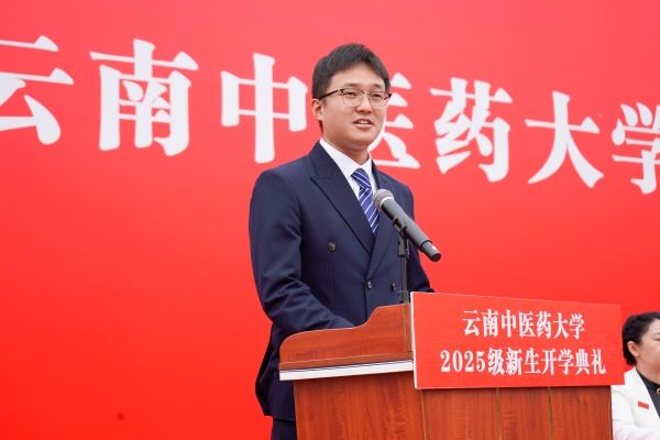 学校教学名师、第一临床医学院外科教研室张富刚副教授作为教师代表发言,他结合自身教学经验与医学感悟,为新生们送上了专业成长与职业发展的殷切嘱托。2025级博士研究生代表乔冠荣同学分享了自己对中医药领域的探索热情与未来规划,展现了新生群体的朝气与担当。校友代表、1988届中医专业毕业生、云南名中医、罗平县中医医院院长刘自平则以自身经历为切入点,鼓励学弟学妹们传承中医药薪火,在行业中发光发热。三位代表的发言情真意切,赢得现场阵阵掌声。