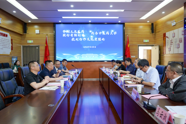 云中讯(办公室)2025年6月6日上午,华润现代中药(昆明)有限公司副董事长兰锋一行莅临我校,就深入推进华润三九医药股份有限公司与学校合作有关事宜进行座谈交流。校长丁中涛主持交流会,副校长温伟波出席;华润三九医药股份有限公司产业拓展部项目总监杨兵,华润现代中药(昆明)有限公司副总经理肖立忠、助理总经理孙浩及我校相关部门(单位)负责同志参加交流。