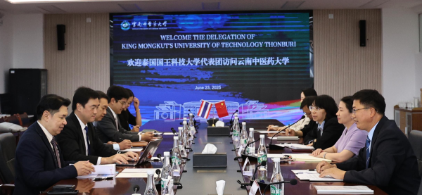 查温详细介绍了泰国国王科技大学的办学特色和发展规划。作为泰国顶尖的理工类高等学府,国王科技大学在工程科技、信息技术等领域具有显著优势,与我校在医学教育和健康科学领域的优势形成了完美互补。此次两校间的合作项目,不仅是两校教育资源的深度融合,更是顺应时代发展的必然选择。查温特别表达了与云南中医药大学在信息技术相关专业领域开展深度合作的强烈意愿,建议双方充分发挥各自学科优势,共同探索“中医药学+信息工程”的创新型人才培养模式。