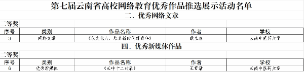 云中讯(新闻与融媒体中心)近日,云南省教育厅公布了第七届云南省大学生网络文化节和云南省高校网络教育优秀作品推选展示活动遴选结果,我校多件作品脱颖而出,获一等奖2项、二等奖6项。具体获奖名单如下: