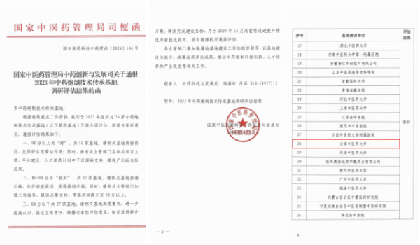 云中讯(科学技术处)近日,国家中医药管理局中药创新与发展司通报《2023年中药炮制技术传承基地调研评估结果》,在全国74家中药炮制技术传承基地中,10家单位获得90分以上的成绩,评价为“好”、37家单位获得80—90分的成绩,评价为“较好”,我校名列其中,获国家级“较好”评价。