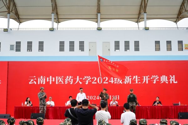 会上,邱勇宣读《云南中医药大学关于成立2024级学生军训团的决定》,并向军训团团长授军训团团旗。