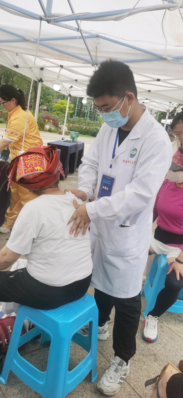 云中讯 (通讯员 孔春芹) 2024年5月28日上午,2024年云南省科技活动周在文山市七花广场举办,此次活动主题为“弘扬科学家精神,激发全社会创新活力”。云南省中医药民族医药博物馆作为云南省科技厅科普教育资源基地以健康科普服务“中医药民族医药进基层”为主题受邀参加。民族医药学院党总支书记刘仁馨带领12名师生参加,现场开展专家义诊、中医药民族医药特色疗法体验、科普宣传以及傣药香囊的发放等活动。