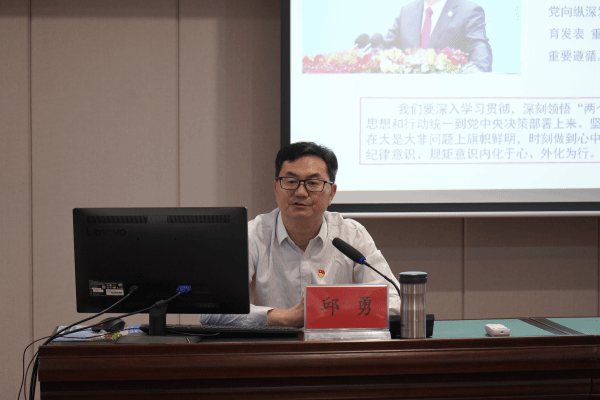 邱勇从深刻认识党纪学习教育的重要性、把握学习重点、始终保持严明政治纪律和政治规矩三个方面围绕《中国共产党纪律处分条例》进行了专题讲授。