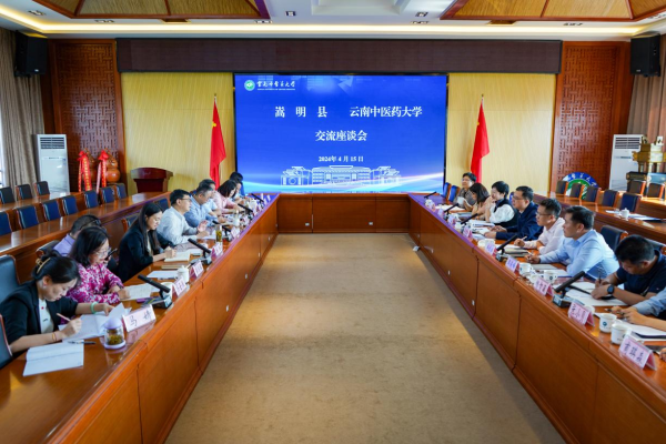 云中讯(办公室)2024年4月15日下午,嵩明县委书记李进波一行莅临我校,就弘扬挖掘兰茂中医药文化等进行座谈交流。校党委书记邱勇主持座谈会。