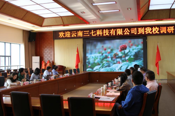 云中讯(科学技术处)2024年4月16日,云南三七科技有限公司董事长、党委书记黄波一行6人来我校调研交流,增强校企间的合作交流。副校长温伟波出席会议,科学技术处、中药学院、民族医药学院、第一及第二附属医院等相关部门负责人和专家参加本次座谈会。会议由科学技术处处长李兆福主持。