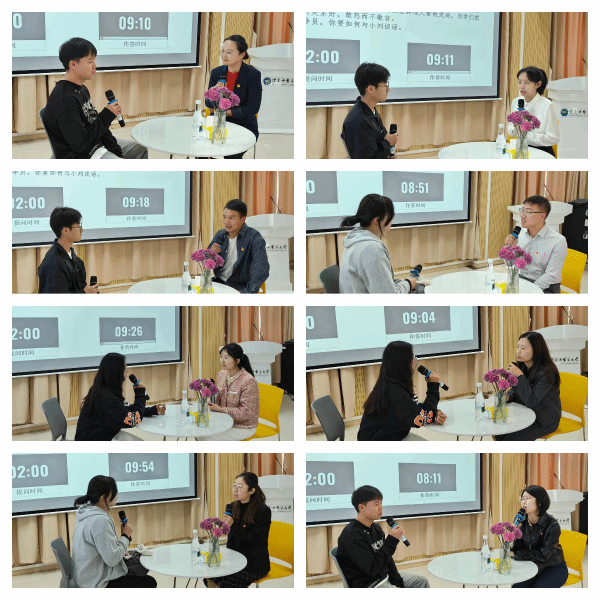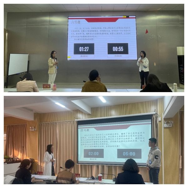 大赛分为基础知识测试、案例研讨和谈心谈话三个环节。学校全体辅导员参加基础知识测试,排名前50%的选手进入案例研讨环节,在此基础上遴选排名前25%的8位选手进入谈心谈话环节。现场比赛重点考察辅导员研判分析问题和应急处置的能力。选手以学生为中心、以解决问题为导向,熟练开展大学生思想政治教育工作,厘清矛盾焦点,提供解决思路,充分展示了良好的职业素养和较高的专业水平。