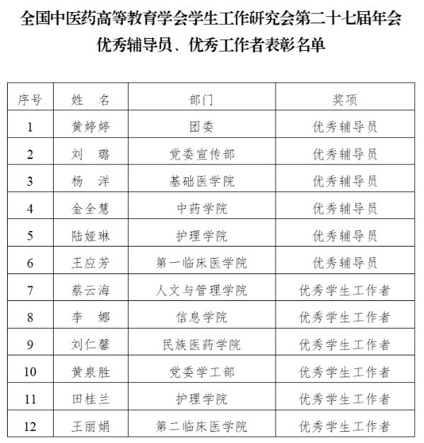 大会表彰了优秀辅导员、优秀学生工作者、年会优秀论文获得者。我校共有6名辅导员、6名学生工作者获此殊荣。