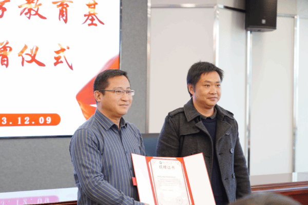 就业创业指导中心主任曹磊为本次捐赠仪器的上海正太网络科技有限公司颁发证书