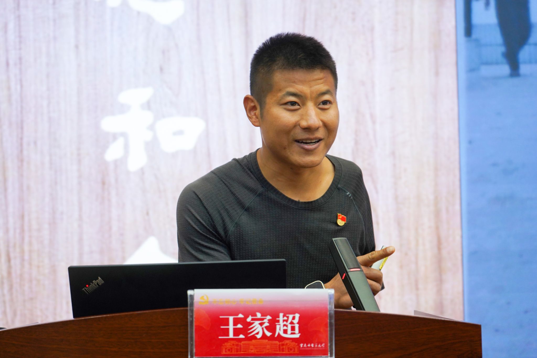 34岁的青年党员王家超以幽默、富有感染力的语言,讲述了自己从农村娃成长为残奥冠军的传奇经历,分享了一路走来如何克服困难挫折,依靠不懈努力与拼搏精神,一次次挑战自我、突破自我的故事,激励同学们树立目标、坚定信念、迎难而上、突破自我、实现梦想,带给同学们“生命有限、潜能无限”的强烈心灵震撼,诠释了新时代共产党人的伟大奋斗精神。