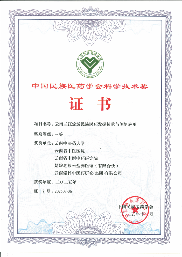 2025年中国民族医药学会科学技术奖三等奖颁奖