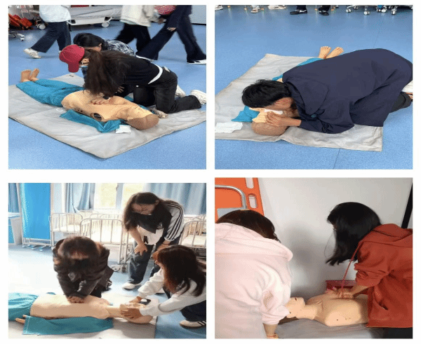 培训现场,护理学院教学团队分批次为同学们进行授课。在心肺复苏(CPR)教学模块,教学团队首先强调了“黄金4分钟”在急救中的关键作用,并通过具体案例让同学们深刻认识急救技能的紧迫性和重要性;在海姆立克急救法培训模块,教学团队重点讲解了海姆立克急救法的操作流程和注意事项。随后,教学团队利用仿真人体模型,分步骤详细演示了心肺复苏和海姆立克急救法的操作流程,让同学们能够通过理论结合实践的方式掌握急救技能的适用场景和操作流程。