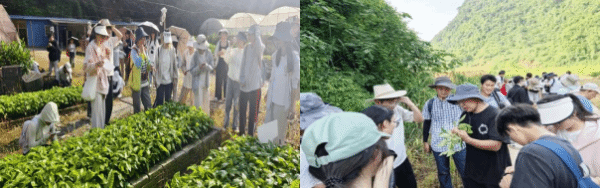 白天,“云药兴边”团成员的征途中充满泥土的芬芳与探索的印记。上午的样线采样不仅丰富了标本夹,更在农场种质资源圃内亲见种苗繁育的精密控制。下午深入麻栗坡大坪寨的三七、重楼种植腹地,团员们细致记录下每一株药用植物的生长密码,与麻栗坡县农业农村和科学技术局、大坪镇人民政府工作人员、大坪镇马达村种植户深度交流,从土地到货架,完整触摸“云药”产业链跳动的脉搏。实践团成员表示:“土壤样本和种植户的一手经验,让课本知识在田间地头扎了根,真切感受到科技助农的分量。”