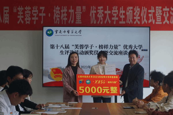 云中讯(通讯员 饶人华)2023年12月12日,第十八届“芙蓉学子·榜样力量”优秀大学生评选活动颁奖仪式在学校呈贡校区举行。校党委副书记杨鹤清,云南省青基会学生资助育人部主任赵珂熳出席颁奖仪式。团委书记浦仕通主持颁奖仪式。