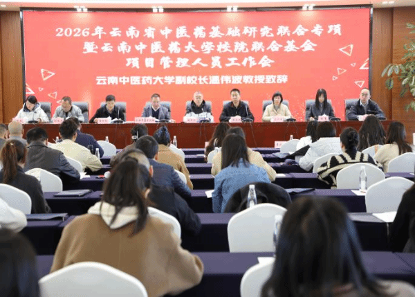 云中讯(科学技术处)2025 年11月27日至28日,由学校主办、云南中医药大学第一附属医院(云南省中医医院)承办的2026年云南省中医药基础研究联合专项暨云南中医药大学校院联合基金项目管理人员工作会在昆明召开。副校长温伟波出席会议并讲话,科学技术处处长李兆福主持会议。