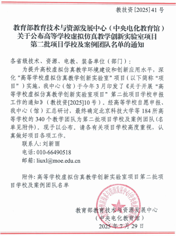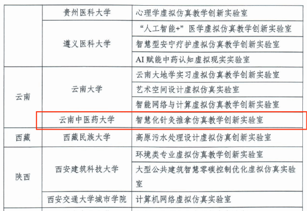 云中讯(第二临床医学院)近日,教育部教育技术与资源发展中心(中央电化教育馆)公布了“关于高等学校虚拟仿真教学创新实验室项目第二批项目学校及案例团队立项名单”(教技资〔2025〕41号文件)。我校第二临床医学院郭村晓副教授团队申报的实验室项目“智慧化针灸推拿仿真教学创新实验室”获得立项。这是学校首次在教育部教育技术与资源发展中心(中央电化教育馆)实验室申报中成功立项,标志着学校在智慧化教学领域取得了重要突破。