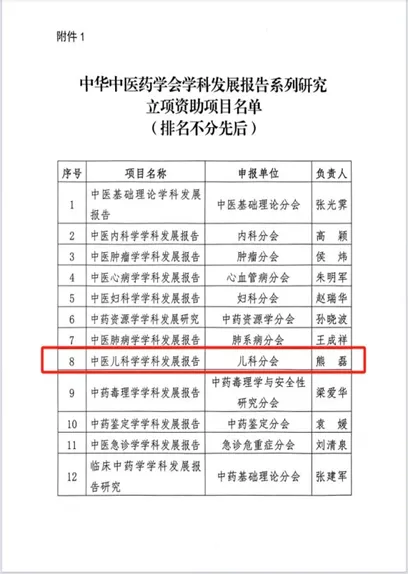 儿科分会获中华中医药学会学科发展报告系列研究项目首批立项资助