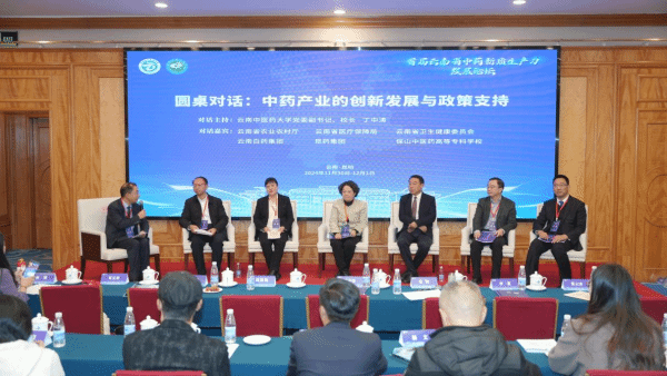 除了精彩的专题授课,论坛设置了圆桌对话环节,由丁中涛主持,邀请云南省农业农村厅、云南省医疗保障局、云南省卫生健康委员会等相关负责人以及药品企业、中医药高校代表共同就“中药产业的创新发展与政策支持”这一主题进行交流对话。嘉宾结合各自领域的实际情况,就如何加强政策引导、优化产业结构、提升创新能力、促进科技成果转化等方面提出了宝贵的意见和建议。