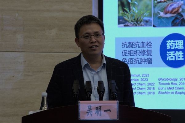 吴明一以“若干中药多糖的结构与功能研究—试论国自然申报书中关键科学问题的凝练”为题,结合团队科研经验,综合讲述了天然糖类药物研发及实践现状,在此基础上阐释项目申报中如何凝练科学问题。