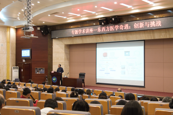 冯奕斌介绍了香港大学中医药学院研究团队在中医药防治肿瘤和代谢性疾病等领域的研究成果,分析了在以西方医学为衡量标准、“西学东盛”为主流的背景下中医药发展所面临的困境,详细阐述了近年来国内外研究者对中医药研究的关注点,剖析了中药研究从单中药到单体、从单中药到复方的两大研究方向,并结合案例介绍了其研究团队与内地知名药企合作进行中药二次开发取得的成果及效益。他表示,“中医药学具备快速接纳新科技的能力”,中医药学在二十一世纪面临很多创新机遇与挑战。