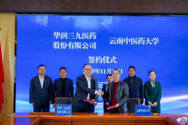 云中讯(办公室)2025年11月28日上午,华润三九医药股份有限公司总裁吴文多、国药事业部总经理钱伟一行莅临我校,就深入推进华润三九医药股份有限公司与学校开展校企合作事宜进行调研交流,并签署战略合作协议和云茯苓全产业链研究开发与应用项目研发意向协议。校长丁中涛出席签约仪式,副校长俞捷主持。签约环节,吴文多、钱伟代表华润三九医药股份有限公司,丁中涛、俞捷代表我校进行签约;华润三九医药股份有限公司及我校有关部门(单位)负责同志参加座谈交流。