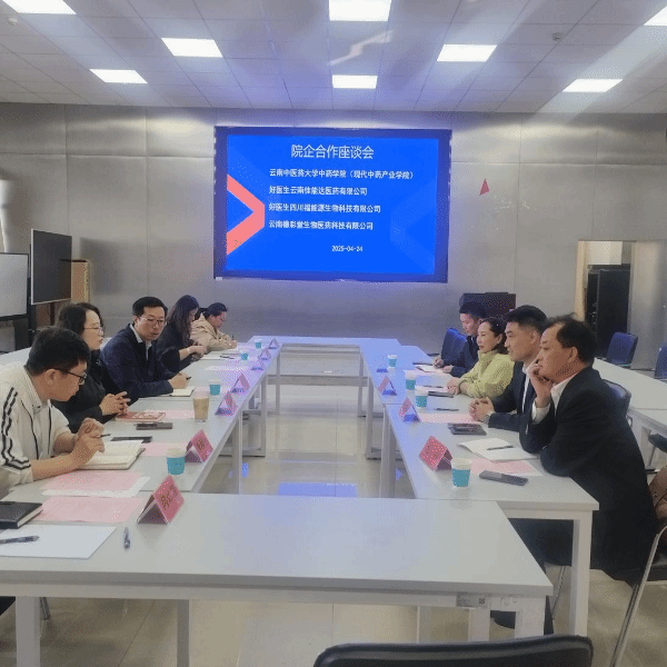 座谈会上,好医生集团云南佳能达医药有限公司总经理耿晓琴、常务副总黄玉明、好医生集团福能源生物科技有限公司销售副总曹英俊,云南德彩堂生物医药科技有限公司董事长龙祥等企业代表就深化产学研合作意愿展开深入交流。双方在跨领域研发团队共建、人才联合培养、成果转化协作与现代中药产业学院共建等方面达成共识,并将推动合作项目落地实施。