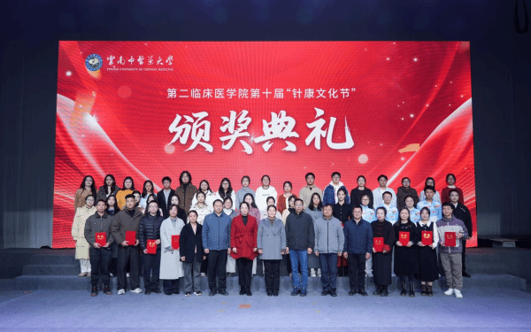 第三篇章中,舞蹈《让我们一起出发》展现了新同学踏上医学征程的青春活力;晚会中,副校长邰先桃以及院领导为2025年“针康文化节”系列活动及各类竞赛的获奖师生颁奖,树立了先进典型。随后的答题互动环节更是将现场气氛推向高潮。音诗画《岐黄星火》追溯岐黄薪火,彰显了中医药文化的博大精深;最后,舞蹈《健康到到令》以融合传统养生功法的现代舞步,传递了“治未病”的健康理念,为晚会画上圆满句号。