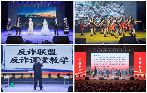 在第二篇章中,情景剧《白药的誓言》生动再现了滇南医药的坚守与创新;舞蹈《阿佤人民唱新歌》以欢快的民族舞步,歌颂了边疆人民的幸福新生活;歌曲串烧《有一种叫云南的生活》将云岭大地的诗画风光与多元文化娓娓道来;而情景剧《反诈联盟》则以创新形式将反诈宣传与校园生活结合,寓教于乐,引发深思。