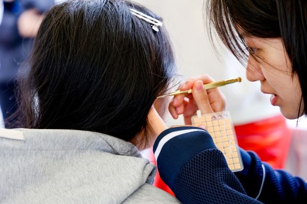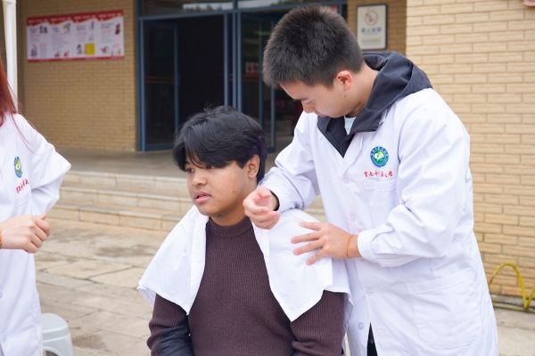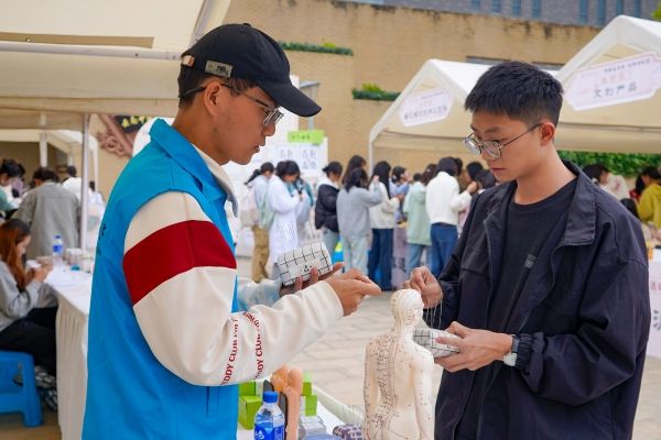 世界传统医药日,推拿体验当然少不了,针灸推拿协会的同学在现场设置体验位,重点为同学、老师缓解颈肩酸痛、腰部僵硬等常见问题,手法轻柔却有力,从揉法、滚法到按揉穴位,每一步都专业规范,还会边推拿边讲解 “按揉风池穴能缓解疲劳”“推拿斜方肌可放松肩颈”,让体验者知其然也知其所以然。