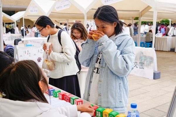学校成果转化办和资产经营公司联合展出了正在自主开发的5款纯天然健康饮品供师生试饮品鉴,其中包括具有降脂保肝功效的火麻仁植物蛋白乳,具有抗动脉粥样硬化的鲜滇橄榄饮,具有抗酒精性肝损伤功效的鲜葛饮,具有除湿利尿功效的薏仁饮,提高免疫力的鲜铁皮石斛饮,体现了学校在大健康产品领域的积极探索。2024年3月,学校资产经营公司获得保健食品全领域注册检验检测资质,是云南省首家食品(含保健食品)全领域检验检测机构,助推药食同源产品产业化。