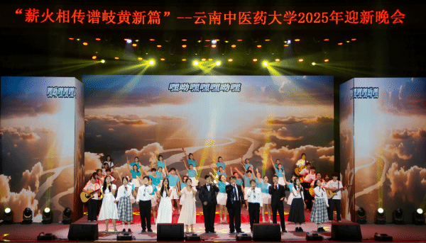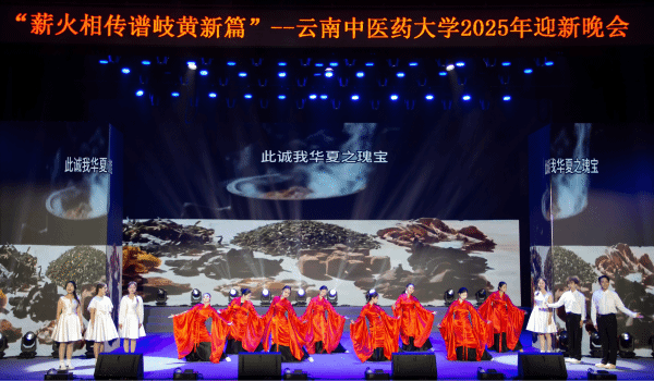 晚会在热烈的舞蹈《旗帜领航》和各学院风采展示中拉开帷幕。第一篇章“薪火·征程”中,合唱《追寻·思念》带我们翻开历史,开启新篇;音诗画《岐黄星火》以舞蹈与情景演绎相结合,再现学校办学发展历程;舞蹈《云岭医韵》把云南少数民族的灵动舞姿,与五禽戏、采药等中医药元素巧妙融合;《古今对话·医者仁心》以古今对话的情景朗诵,串联起白塔关上先贤故事与今日医者初心。第二篇章“杏林·绽放”中,《鼓振岐黄·刚柔并济》用激昂鼓乐和舞蹈诠释了“刚柔” 二字;小品《和和美美》把新生宿舍的日常搬上舞台,改编成幽默小品,让同学们笑中带暖;武术表演《精·气·神 》让精、气、神三个字在舞台上鲜活绽放。在第三篇章“梦想·启航” 中,创意串烧《本草律动》将古筝、琵琶的民乐旋律融入针灸推拿的招式、超酷的说唱与街舞,堪称传统与潮流的精彩碰撞;《青春恰时来》歌曲联唱引发全场共鸣;集体朗诵《大医精诚·青春宣言》 “从神农尝百草到抗疫守一线” 的传承故事,共同许下新时代中医药学子的誓言。最后晚会在歌伴舞《走向复兴》中圆满落幕。