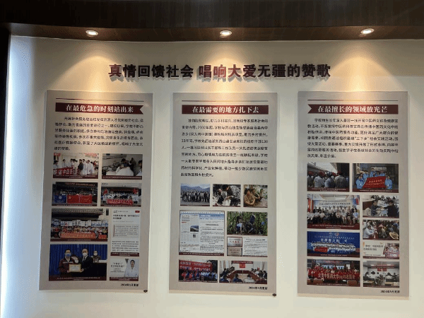更新后的校史馆2馆按先总后分的思路进行内容布局。内环4块展板分别从推动学校高质量发展整体思路布局、深化体制机制改革进程、民族医药特色优势、服务地方经济社会发展成效四个方面进行梳理呈现。外环17块展板分别从铿锵足音、党建引领、立德树人和高校五大职能八个方面进行系统梳理展示。铿锵足音版块以时间轴的方式,图片化展示了1960年创立以来学校发展史上具有里程碑意义的事件;党建引领版块集纳式呈现了2010年以来学校两届党委领导班子推进全面从严治党情况;立德树人版块梳理了2010年以来学校思政教育发展脉络和开展德育教育的举措成效;人才培养版块梳理呈现了2010年以来学校深化教育教学改革、提升人才培养质量的脉络,梳理了学校历次制定的本科人才培养方案,集纳呈现了2010年以来我校获得国家级荣誉的部分教师和人才;科技创新版块梳理呈现了学校实施创新驱动发展战略的思路举措和取得的标志性科技成果;服务社会版块从突发疫情时冲锋在前、脱贫攻坚中扎根奉献、志愿服务中绽放光芒三个视角对我校师生发挥资源人才优势、服务社会需求进行了撷英呈现;文化传承创新版块梳理了学校加强校园文化建设的脉络和突显中医药文化特色丰富文化育人内涵的举措经验;对外交流合作版块对我校开展中医药国际化教育、促进中医药对外交流合作的历史脉络和发展成就进行了梳理呈现。