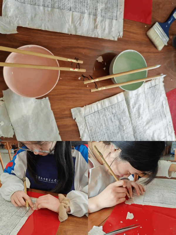 修书即修心:“修古籍时,连呼吸都要放轻。”——修复古籍的同学常这样调侃。当我亲手触摸到那些破损的书籍时,心中充满了敬畏和感慨。我小心翼翼地修复着,每一笔、每一划都充满了对知识的尊重和对历史的传承。