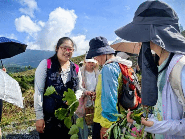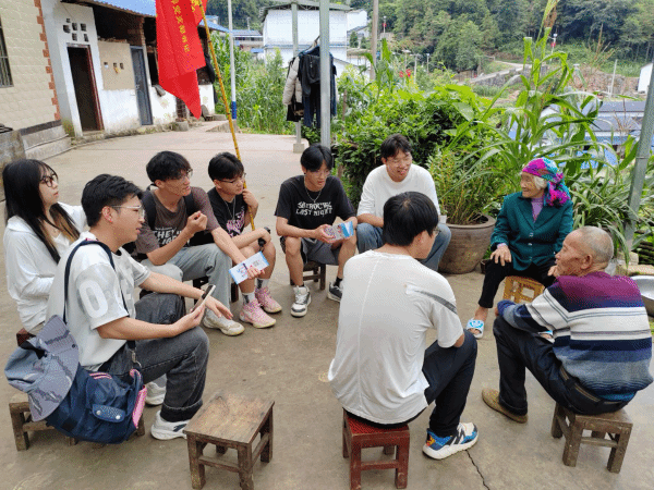 下午,团队奔赴茨竹坝村了解当地村民对中医药的认知。开展入户调研活动。通过入户访谈发现,村民对本地草药资源利用率不足。队员们随即开设“移动课堂”,用采样植物现场讲解周边道地药材的辨识要点与家庭应用,让村民了解到后山的‘野草’是治病宝贝!