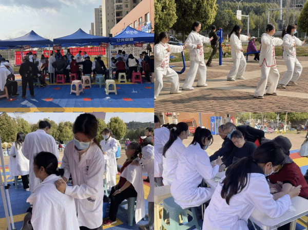 活动中,志愿者为居民开展推拿、艾灸、耳穴贴等中医特色治疗,帮助大家缓解病痛、舒筋活络。同时,志愿者还展示了易筋经与太极拳,一招一式尽显传统武术魅力,居民们学习热情高涨,全神贯注地跟随志愿者练习,现场健身氛围浓厚。不少居民表示,此前对中医了解甚少,持续的志愿服务活动不仅让他们领略到中医独特魅力,还学到了实用的养生保健知识。