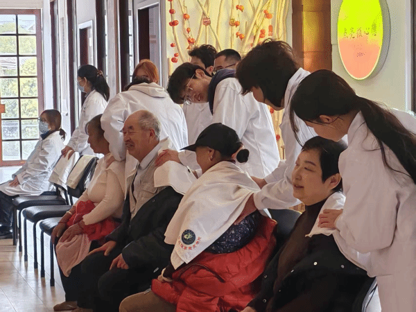 人才培养扎根实践,服务社会有担当。此次活动让学生直面真实健康需求,既检验了课堂知识,又锤炼了医者仁心。通过耳部穴位精准定位,为居民调理失眠、高血压等问题。同时,志愿者细致记录老年居民血压数据,结合中医体质辨识提供个性化饮食与运动建议,展现“治未病”理念的实践应用。