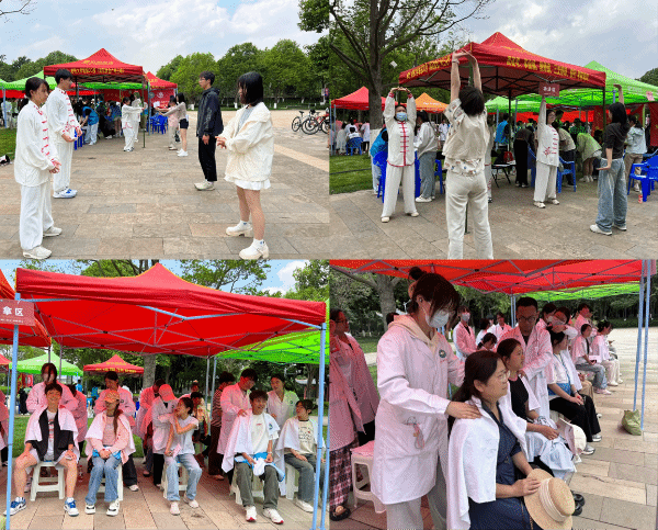 本次活动融合中医诊疗、养生体验、文化互动于一体,吸引众多师生参与,现场氛围热烈。活动现场设置了推拿、艾灸、耳穴贴、量血压、脉诊、功法教学六大服务区。推拿区前排起长队,针对师生常见的肩颈劳损、腰椎不适等问题,志愿者们手法娴熟地开展推拿按摩,通经活络;艾灸、耳穴贴体验则让师生直观感受到中医“小穴位,大健康”的独特魅力。在脉诊区,志愿者通过“望闻问切”为师生辨证论治,解答健康问题;“八段锦”“太极拳”等传统养生功法吸引众多师生跟随学习。此次活动,志愿服务团队还创新设计并开展了“健康集章卡”活动,师生通过参与中医药有关的趣味小游戏收集印章,兑换惊喜礼品,在趣味互动中了解中医“治未病”理念。