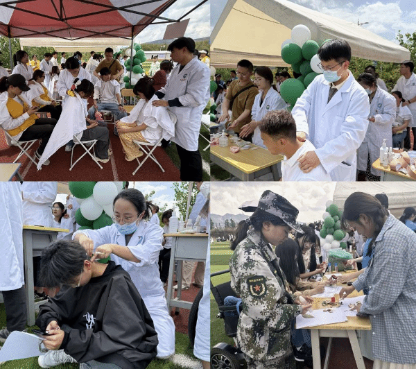 王丽娟参加特职院全国助残日活动启动仪式和优秀助残之星等颁奖典礼。教师赵嬿带领党团员志愿者们,利用专业优势为特职院师生们提供了针灸、推拿、艾灸、耳穴埋籽等多项中医特色诊疗服务,参与的师生可以领取集章卡,完成多项体验后可以集齐4套中医特色印章。康复治疗教研室教师施英华、王爽结合学生情况,提供了康复训练指导意见。活动还设置了“中药材剪贴画”手工体验,通过引导参与活动的同学们用中药材制作贴画,激发他们的创造力和情感表达能力。