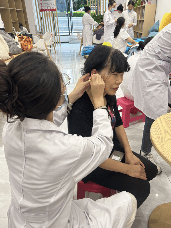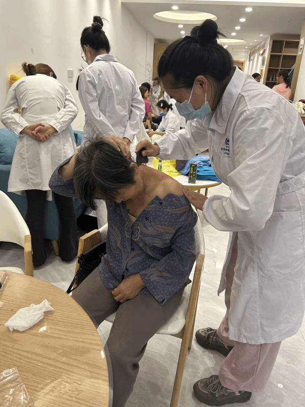 活动现场,同学们热心接待前来咨询和问诊的社区居民,并根据每位居民的身体状况和需求,有针对性地为社区居民提供刮痧疗法、耳穴埋籽、推拿按摩、血压测量等基础健康检查服务和中医特色护理技术,并就居民们提出的日常饮食、保健等相关问题提出相关建议,同时向居民们普及中医护理知识和保健常识。
