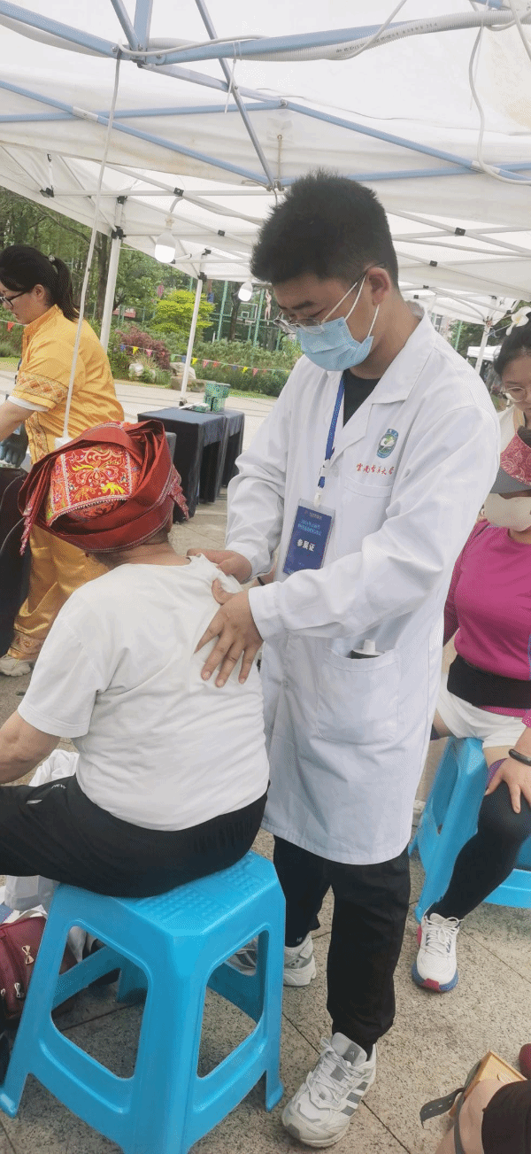 云中讯 (通讯员 孔春芹) 2024年5月28日上午,2024年云南省科技活动周在文山市七花广场举办,此次活动主题为“弘扬科学家精神,激发全社会创新活力”。云南省中医药民族医药博物馆作为云南省科技厅科普教育资源基地以健康科普服务“中医药民族医药进基层”为主题受邀参加。民族医药学院党总支书记刘仁馨带领12名师生参加,现场开展专家义诊、中医药民族医药特色疗法体验、科普宣传以及傣药香囊的发放等活动。