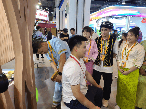 服贸会上,傣医锤筋、推拿、拖擦治疗、中药耳穴压贴等多种特色疗法获得众多观众的青睐。