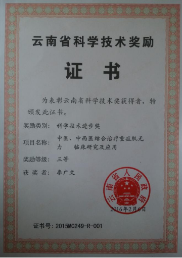 多年的临床实践中,李广文越来越擅长于治疗重症肌无力、运动神经元病、进行性肌营养不良症、吉兰-巴雷综合征、多发性肌炎、周期性瘫痪、多发性硬化等中医痿病以及系统性红斑狼疮、类风湿关节炎、干燥综合征、白塞病、过敏性紫癜、血小板减少性紫癜、肾炎等自身免疫性疾病。他边临证边总结,不断发表学术论文。“发表学术论文,并不需要多高的平台,只要有病例,就要去分析研究,去总结提高,待文章发表到一定数量,便可着手撰写专著。至于科研项目,就要结合临床,选好点定好位立好项,先从州级开始,只要获得州级科技进步一等奖后便可向省级冲刺。”李广文轻松地讲述着他发文章出专著获科研奖的经历。但他身边的人都清楚,能在基层医院达到李广文这样的学术高度,相当不容易。