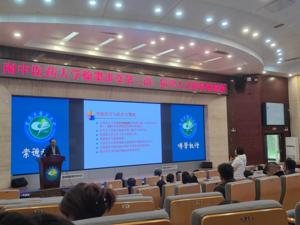 云中讯(通讯员 蒋涛)2025年10月27日上午,云南中医药大学翰墨讲堂第三讲如期举行。本次讲座以“医学人文研究的视角与创新”为主题,由学校图书馆主办,中医西学研究所、世界传统医学研究院承办,特邀教授、主任医师、博士生导师、《医学与哲学》杂志常务主编赵明杰担任主讲嘉宾,160多名师生齐聚翰墨楼一楼报告厅,共同聆听这场兼具理论深度与实践价值的学术分享。